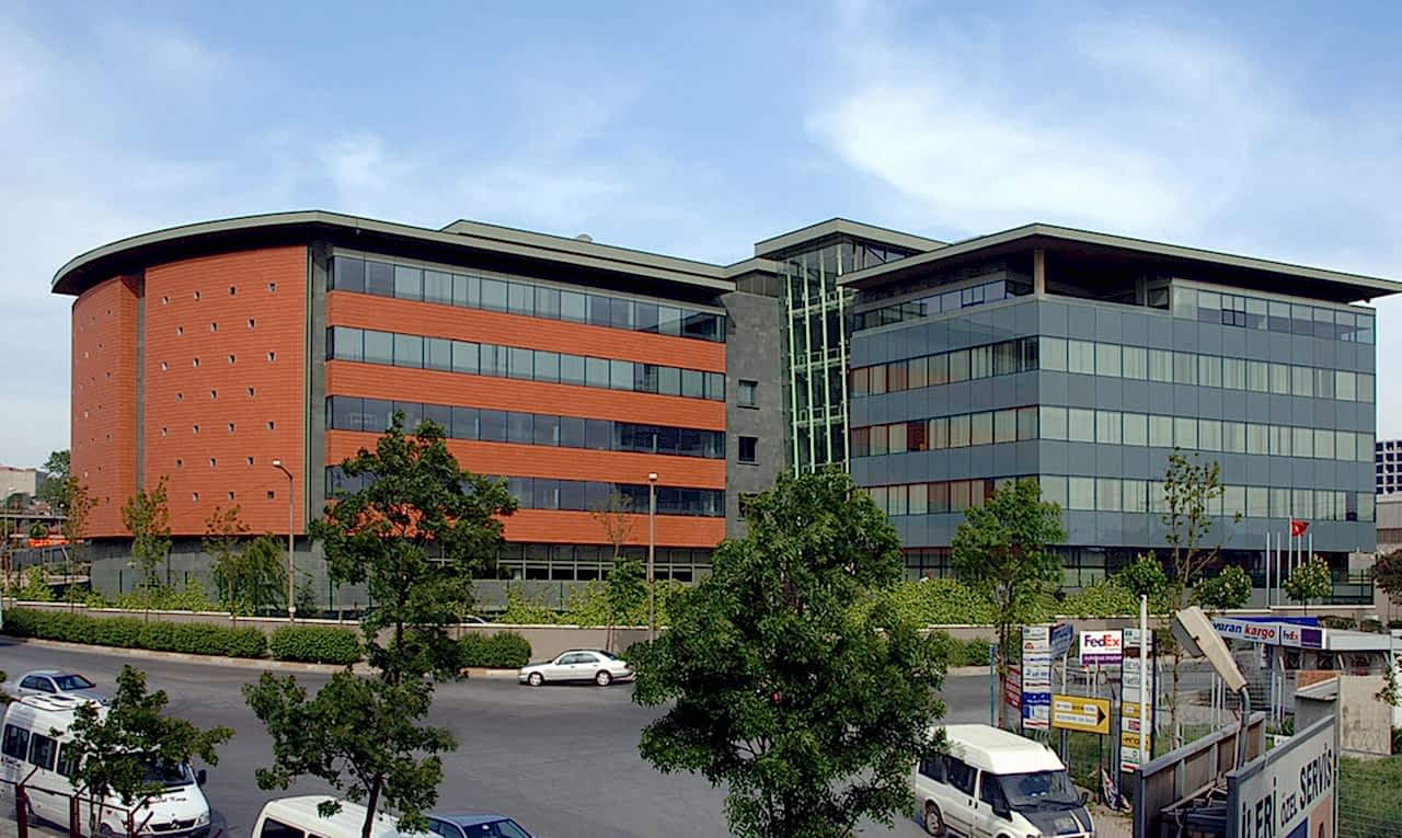 The new headquarters of Favori, one of the leading jewellers in Turkey specialised in gold and precious stones, combines the Company's management, design, production and marketing functions all under one roof. The external facades of the reinforced concrete structure are clad predominantly in terracotta tiles, patinated copper panels and structural glass. The materials and proportions have been varied on different parts of the elevation to reflect the different internal functions and to avoid monotony of expression by presenting changing views of the building from different directions.